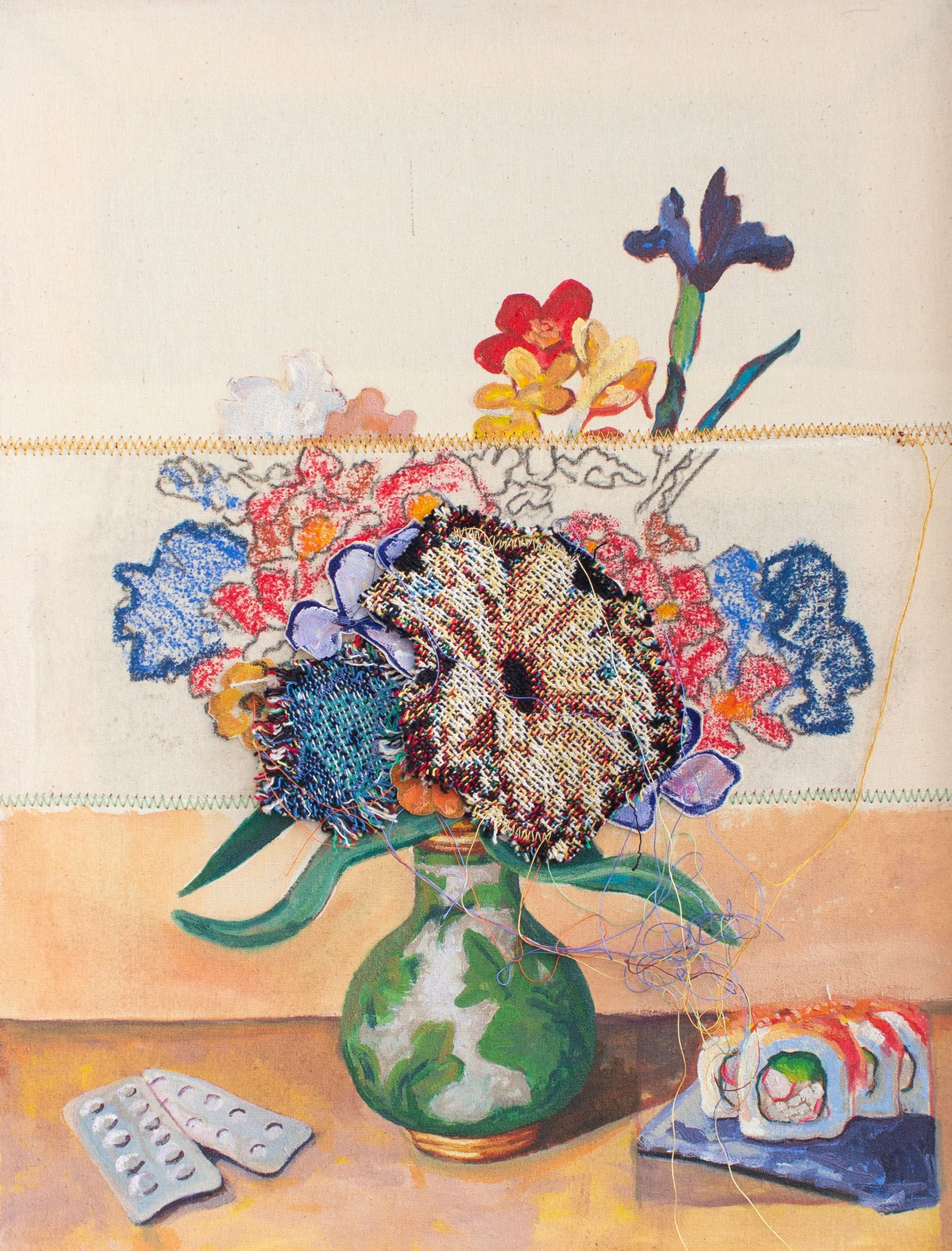 Exploring flowers as symbols of hope, this piece draws on the compositional and allegorical traditions of classical still life.